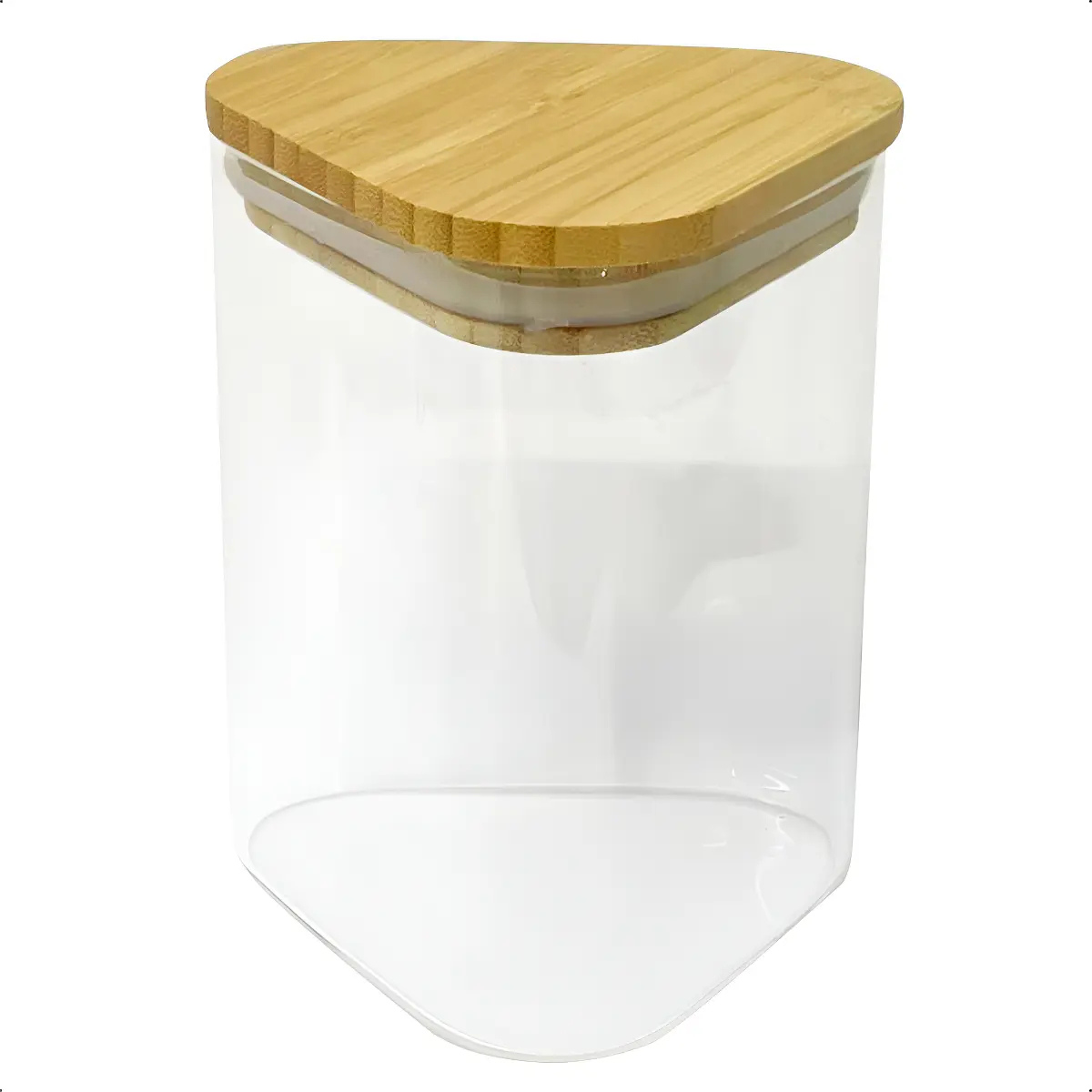 Sumá orden y estilo a tu cocina con este elegante frasco de 500 ml. Su diseño triangular optimiza espacios, mientras que la tapa de bambú ayuda a conservar alimentos secos frescos por más tiempo. Ideal para café, azúcar, especias o snacks.
